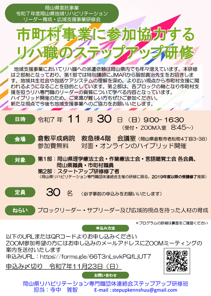 市町村事業に参加協力するリハ職のステップアップ研修【R7.11.30ハイブリッド開催】