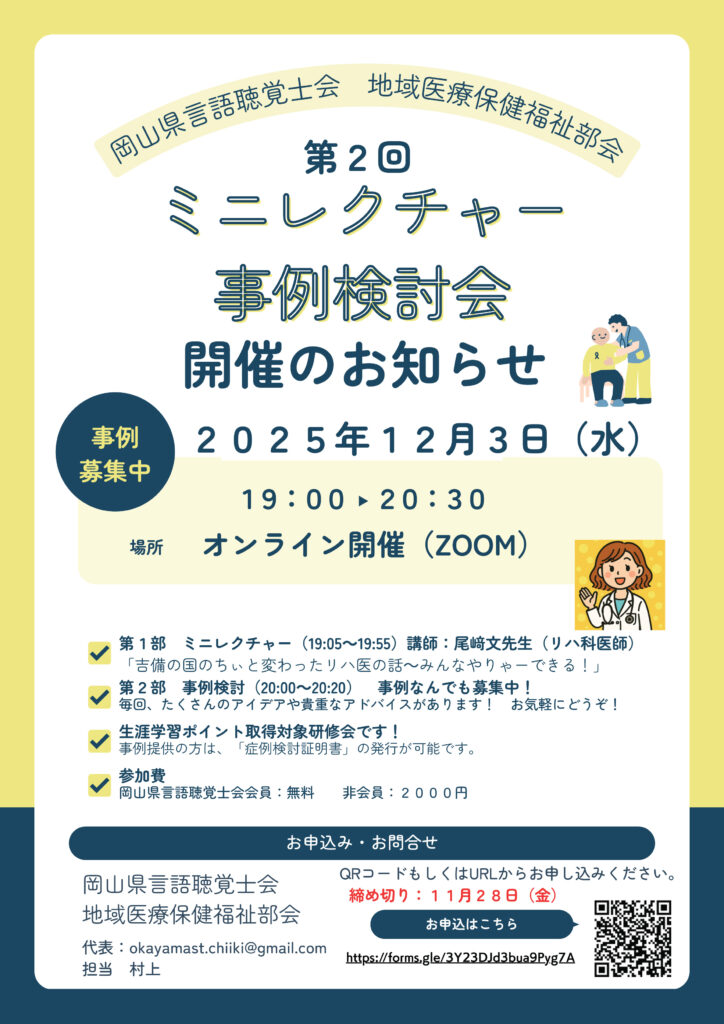岡山県言語聴覚士会地域医療保健福祉部会ミニレクチャー事例検討会【R7.12.3オンライン開催】